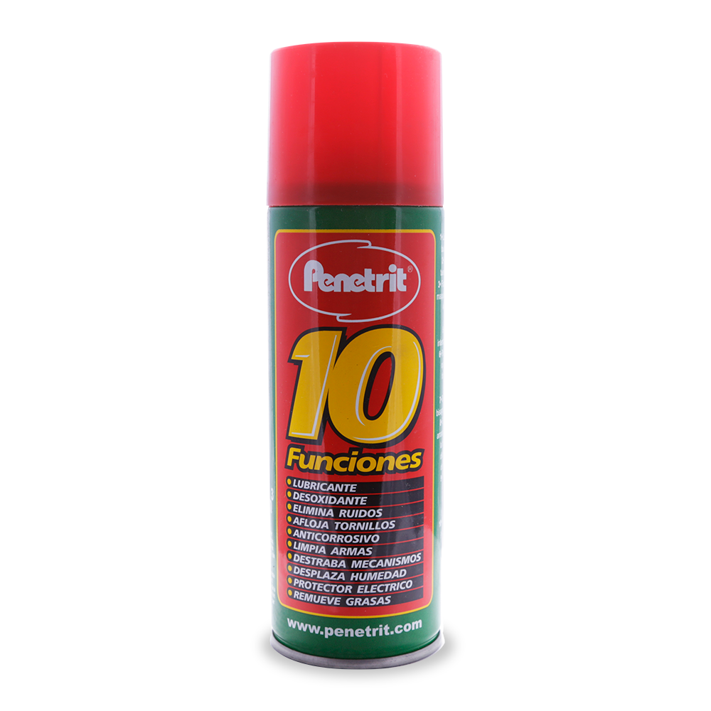 Lubricante altamente aditivado con componentes antioxidantes, anticorrosivos y antiespumantes de calidad internacional, desarrollado para cumplir 10 funciones específicas: lubricar, desoxidar, eliminar ruidos, aflojar tornillos, proteger contra la corrosión, desplazar la humedad, limpiar armas, destrabar mecanismos, proteger circuitos eléctricos y remover grasas.