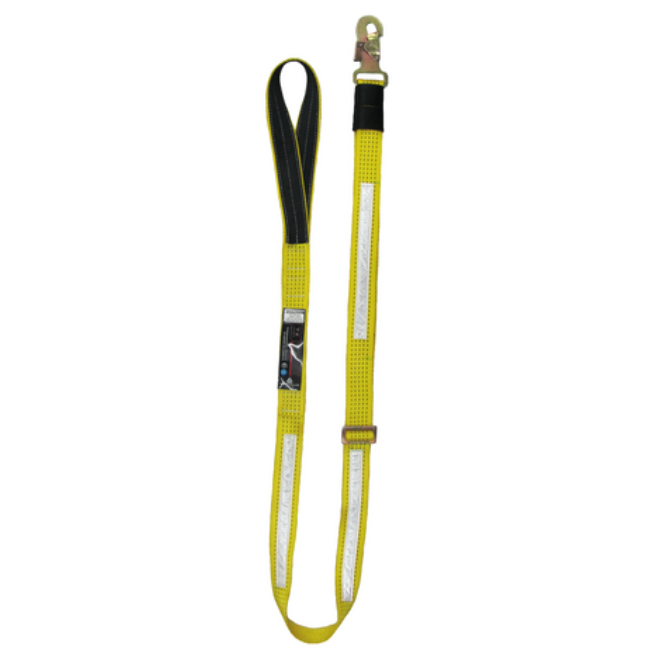 Cabo de posicionamiento regulable en cinta plana, con mosquetón de 18 mm.