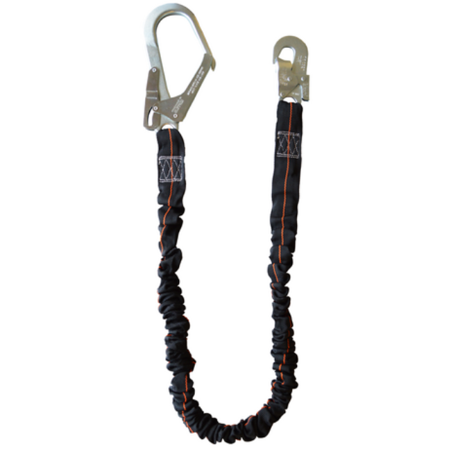 Cabo con ULTRA-ABSORBEDOR integrado x 1,5 m con mosquetón de 18 mm y mosqueton de 55 mm.