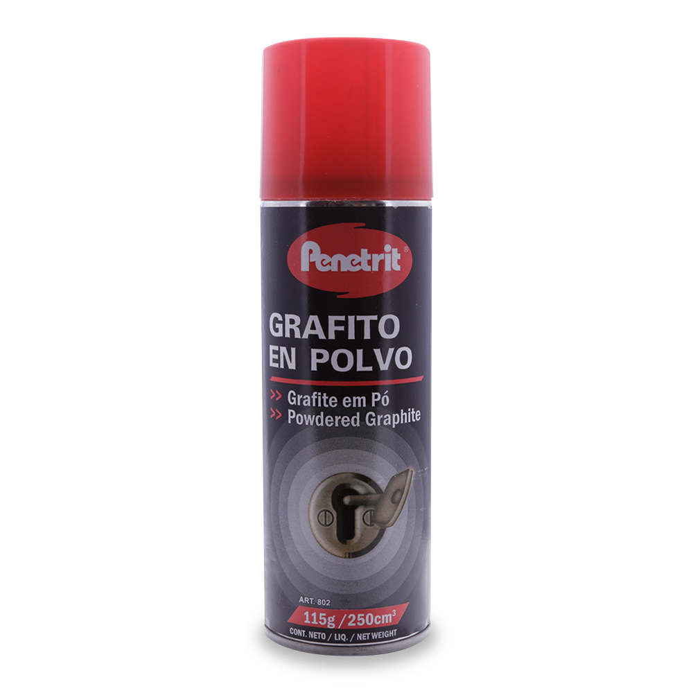 Único producto en el mercado que contiene, en aerosol, puro grafito micro-granulado en polvo, sin contenido de aceites. Ideal para ser utilizado en todo tipo de cerraduras y candados.