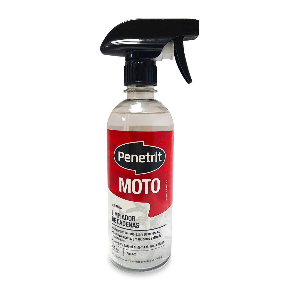 Limpiador de alto poder desengrasante diseñado para solubilizar y remover grasas y aceites de todo tipo, incluso los que llevan un buen tiempo depositados en la cadena. Producto de fácil aplicación que elimina con rapidez la suciedad, la mugre y el polvo de las cadenas. Su fórmula es compatible con anillos de cadenas tipo O, X y Z ring.