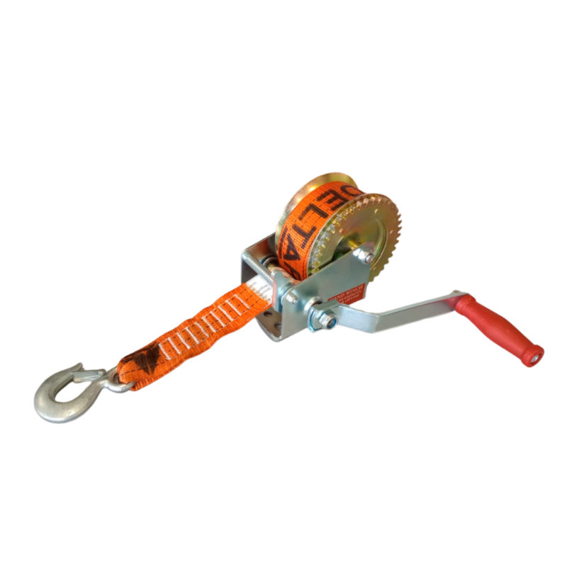 Malacate manual de anclaje fijo, en cinta de 50 mm de ancho. Carga máxima de trabajo 650 kg