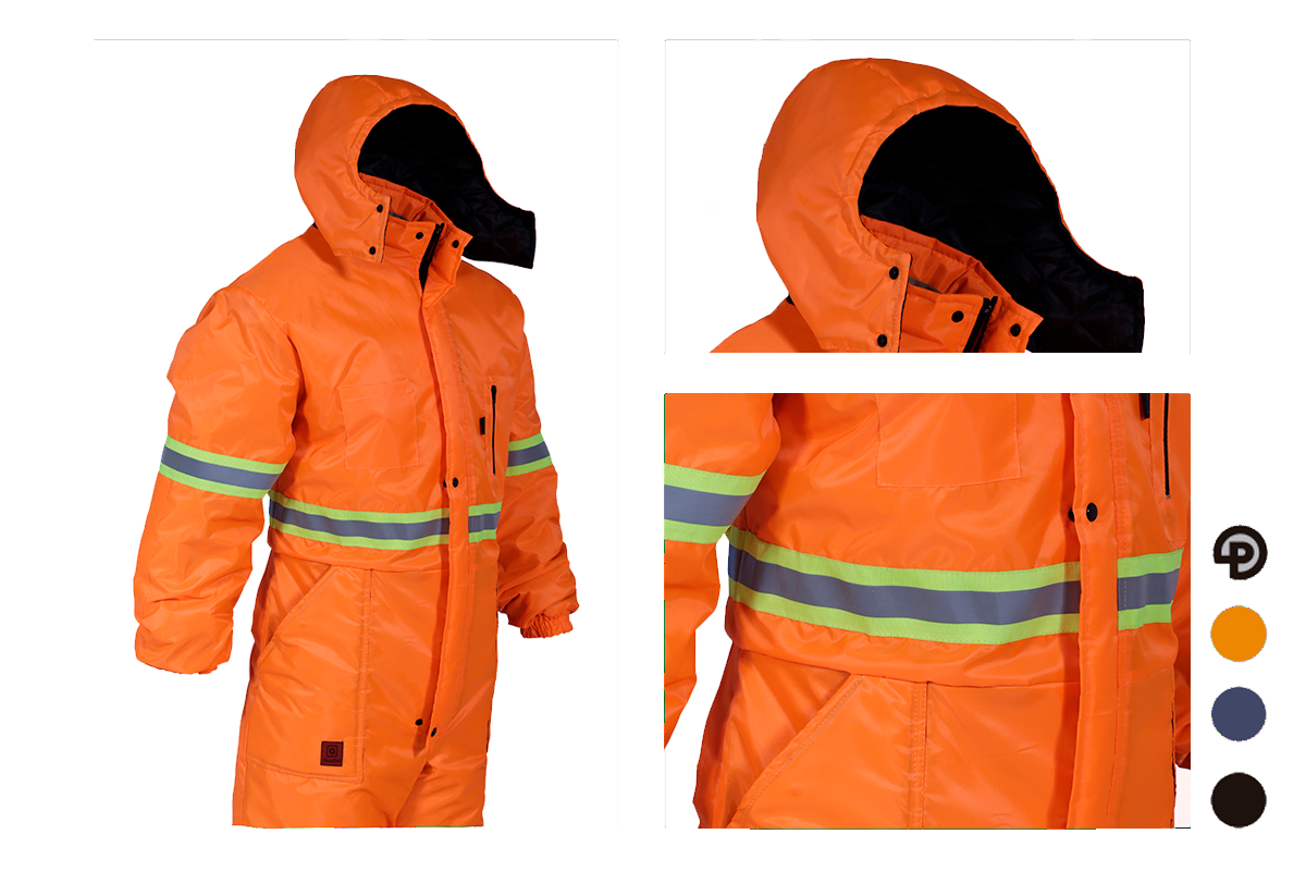 Tela Trucker, entretela de guata matelaseada, capucha desmontable, puños elastizados, cierre en botamanga con cartera y carterón delantero. Bolsillo en el pecho, plaqué con cierre, dos bolsillos delanteros plaqué. Acceso lateral con cierre. Reflectivos. Talles del S al 3XL. Colores naranja, azul y negro. Producto disponible en linea Pampero.