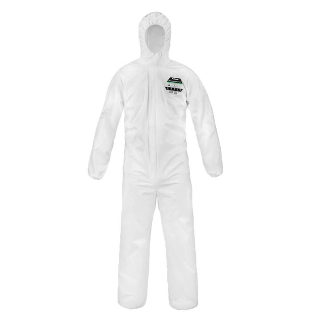 Safegard GP utiliza un ligero tejido de PP de 4 capas SMMS («Spunbond-Meltblown-Meltblown-Spunbond) que combina una buena transpirabilidad (10 veces mayor que otros materiales de Tipo 5 y 6) con una eficaz repelencia a los líquidos y filtración de partículas, lo que lo convierte en la opción más cómoda para la protección contra aerosoles líquidos ligeros y polvo. overol con capucha elástica, manguitos, cintura y calcetines unidos. Cinta precintable de doble cara en la cubierta de la cremallera. Protección EN Tipo 6 contra aerosoles ligeros y Tipo 5 contra partículas secas. Estilo Super-B exclusivo de Lakeland con capucha de 3 piezas, mangas insertadas y refuerzo en la entrepierna para un mejor ajuste, mayor libertad de movimientos, comodidad y durabilidad. Certificado según EN 1149-5 para prendas disipadoras de electricidad estática.