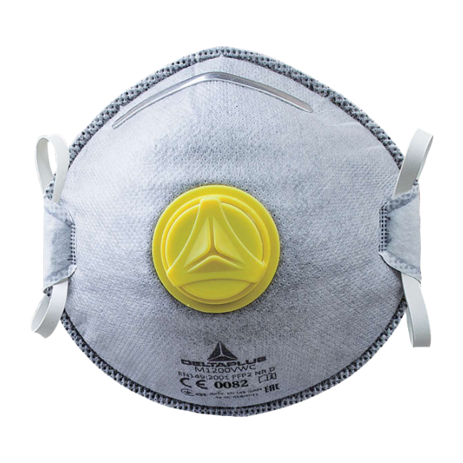 Caja de 10 mascarillas filtrantes FFP2 de fibra sintética no tejida impregnada de carbón activo. Protección contra los olores dañinos (por ej. humos de soldadura). Forma convexa. Lámina nasal de ajuste. Refuerzo borde espuma bajo lámina nasal. Válvula de exhalación de altas prestaciones. Test opcional DOLOMITE para un confort respiratorio prolongado.
