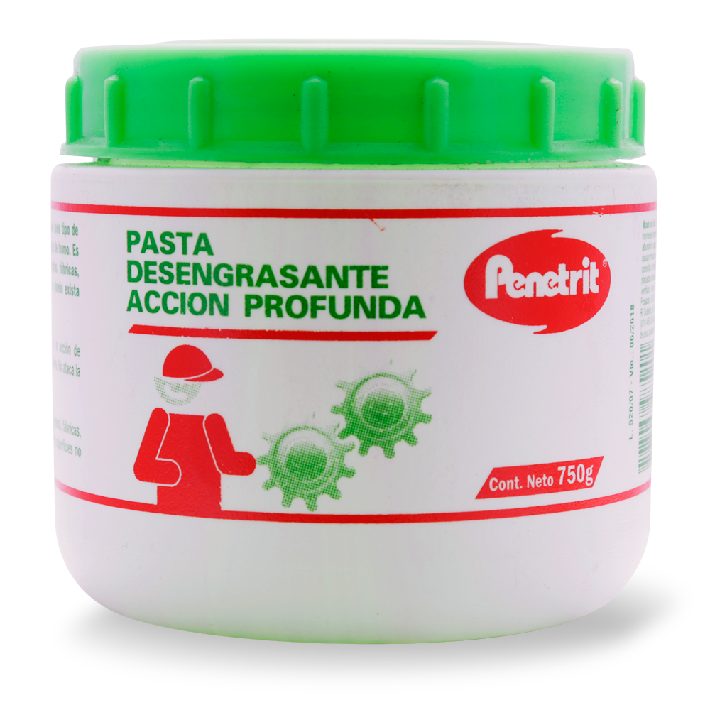 Pasta Desengrasante de Acción Profunda con agradable fragancia. Remueve todo tipo de grasas, aceites, gomas, lacas, tintas, carbón, alquitrán, adhesivos y negro de humo. Es un limpiador en pasta, ideal para usar en talleres mecánicos, imprentas, fábricas, industrias en general, compañías petroleras y cualquier otro trabajo donde exista suciedad rebelde a los limpiadores tradicionales.