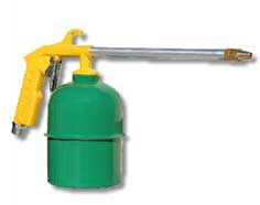 Pico de bronce con contratuerca regulador de fluido. Gatillo de accionamiento anatómico. Cuerpo aluminio. Depósito metálico. |