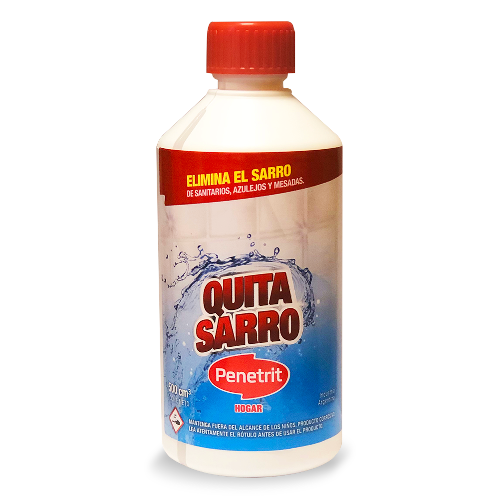 Tapa de seguridad: para abrir el envase, presione la tapa hacia abajo y luego gire en la dirección que indica la flecha. Para cerrar, simplemente gire sin hacer presión. Se recomienda hacer una prueba en una pequeña zona de la superficie a tratar, para comprobar que el producto no la dañe. El “Quita Sarro Penetrit” puede ser usado puro o diluido, dependiendo de la cantidad de sarro u óxido a eliminar. Para diluirlo, mezcle una parte de “Quita Sarro” en un recipiente de vidrio o plástico, con una parte de agua, cuidando de agregar el producto sobre el agua. Aplique sobre la superficie a tratar usando esponja, trapo o pincel. Deje actuar durante 5 o 10 minutos, controlando visualmente el accionar del producto dado su carácter corrosivo. Frote con un cepillo, lana de acero o esponja hasta remover todo el sarro. Enjuague con abundante agua. Manténgalo guardado en un lugar seco, bien ventilado y al resguardo del sol.