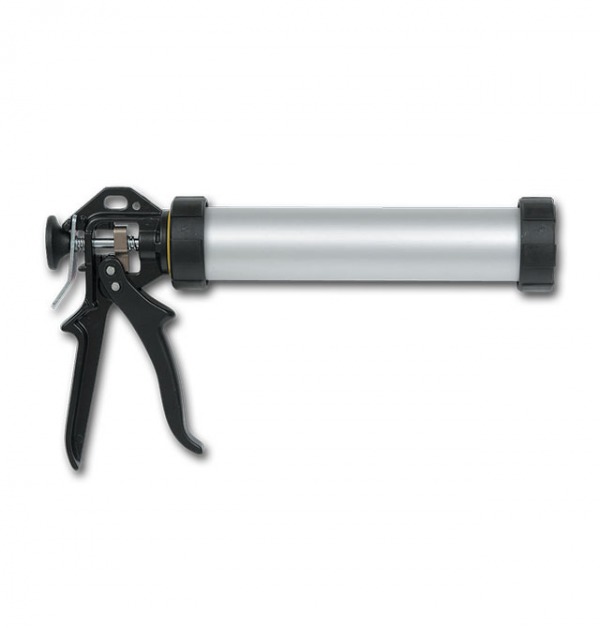 Para unipacks de 400 ml, 310 ml y cartuchos. Con tubo de aluminio. Mecanismo indestrucible. Requiere menor fuerza. No cansa la mano del operador.
